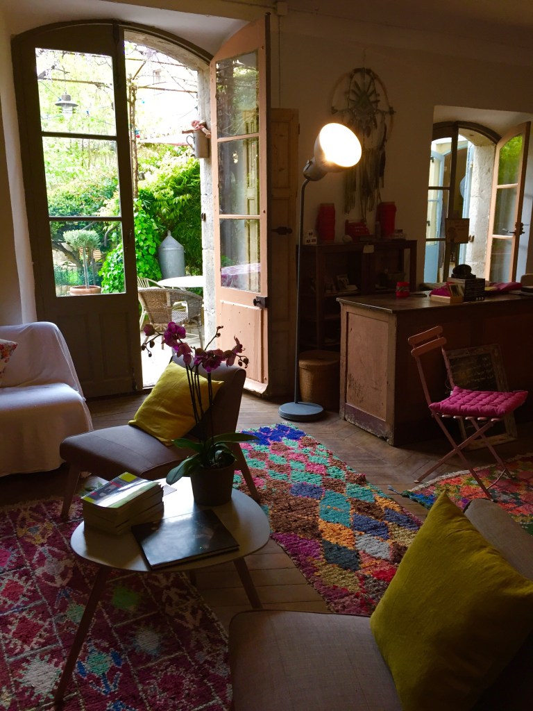 Hotel des Colonnes in Riez, Haute Provence, is really a one-of-kind experience in a well preserved 17th centrury building with an interior design filled with fun and colours. Four rooms, and you live in the same house as the owner, who used to have an antique-broquante shop and still holds a little café and interior design shop in the same building. Dinner is eaten in the kitchen or in the garden and everything is really really, awesome and different, like the monkey that joined us for dinner!?! Www.hoteldescolonnes-riez.fr