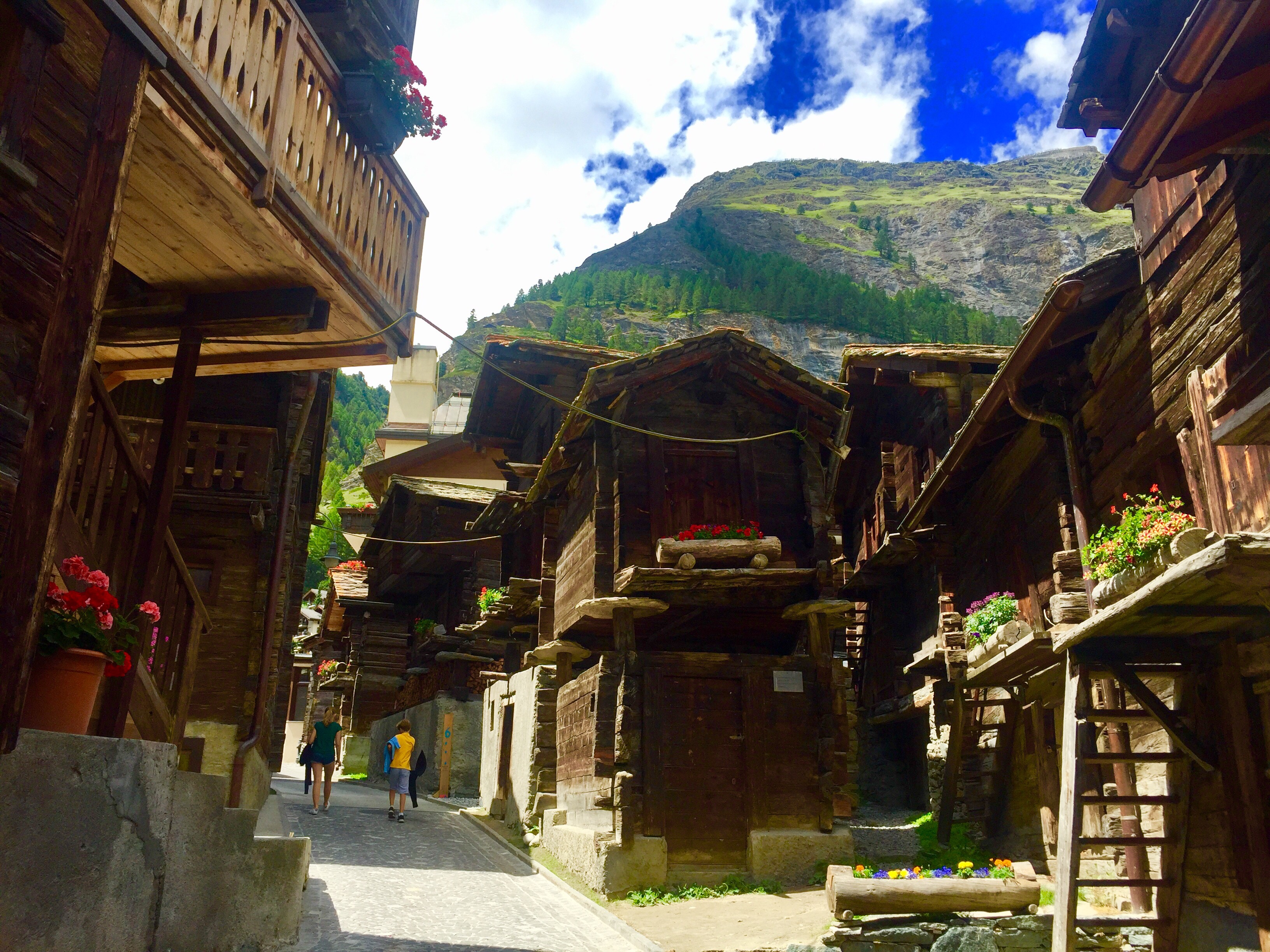 The iconic mountain is watching over the ancient Zermatt buildings, lush and flowery walking paths and surrounding lakes.